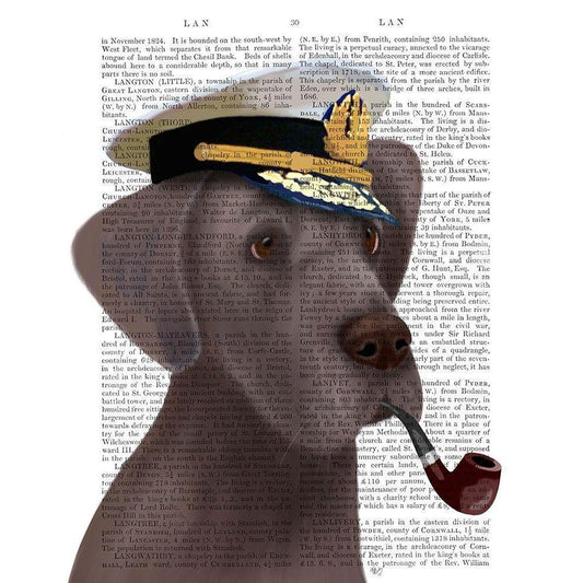 Dog Au Vin, Dachshund Gold White Modern Wood Framed Art Print by Fab Funky