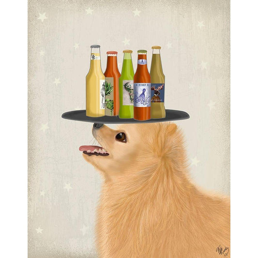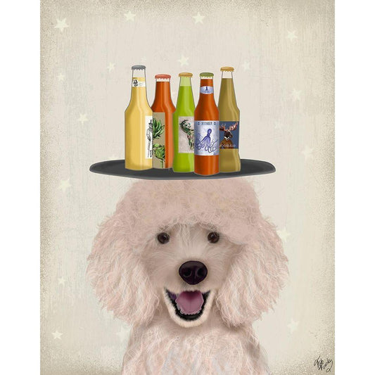 Poodle Beer Lover White Modern Wood Framed Art Print by Fab Funky