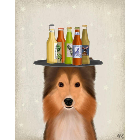 Shetland Sheepdog Beer Lover White Modern Wood Framed Art Print by Fab Funky