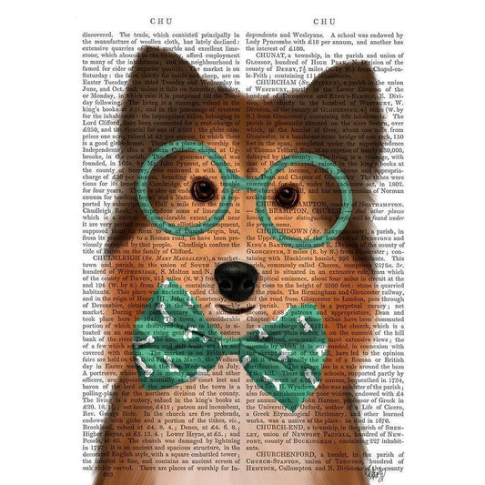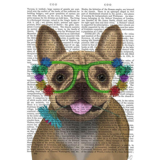 English Bulldog and Flower Glasses White Modern Wood Framed Art Print by Fab Funky