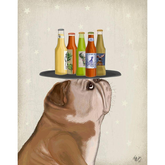 English Bulldog Beer Lover White Modern Wood Framed Art Print by Fab Funky