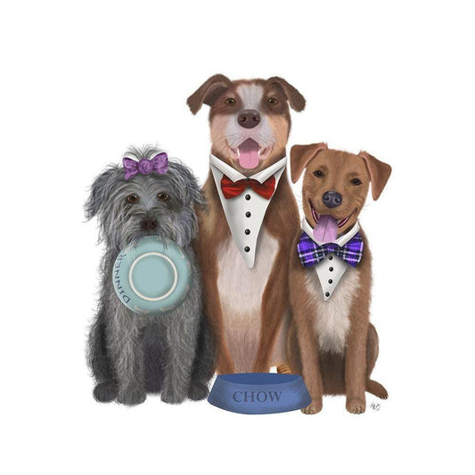 Dinner Dogs, Mutts White Modern Wood Framed Art Print by Fab Funky