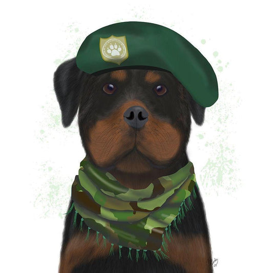 Rottweiler Military Dog White Modern Wood Framed Art Print by Fab Funky