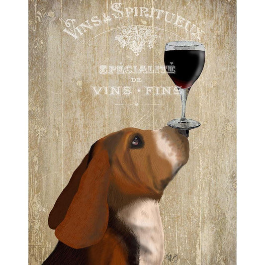 Dog Au Vin, Basset Hound White Modern Wood Framed Art Print by Fab Funky