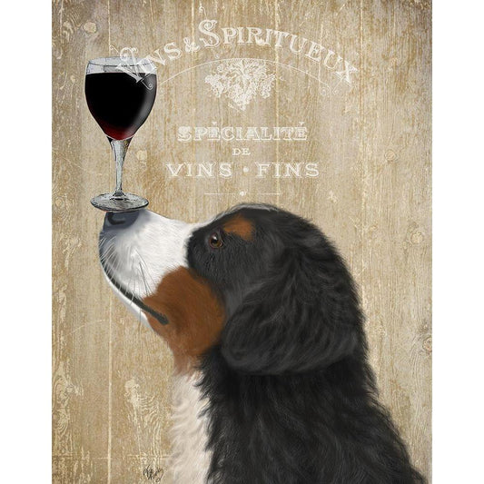 Dog Au Vin, Bernese White Modern Wood Framed Art Print by Fab Funky