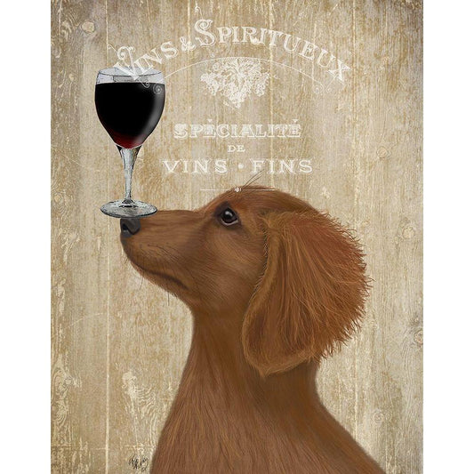 Dog Au Vin, Dachshund Gold White Modern Wood Framed Art Print by Fab Funky