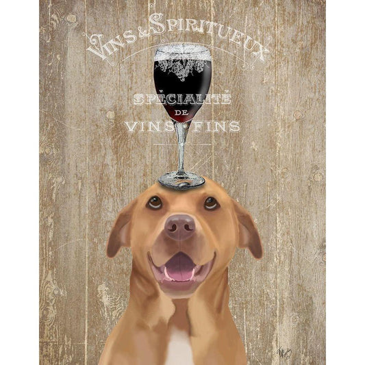 Dog Au Vin, Pit Bull White Modern Wood Framed Art Print by Fab Funky