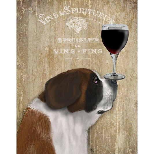 Dog Au Vin, St Bernard White Modern Wood Framed Art Print by Fab Funky