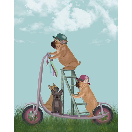 French Bulldog Scooter White Modern Wood Framed Art Print by Fab Funky