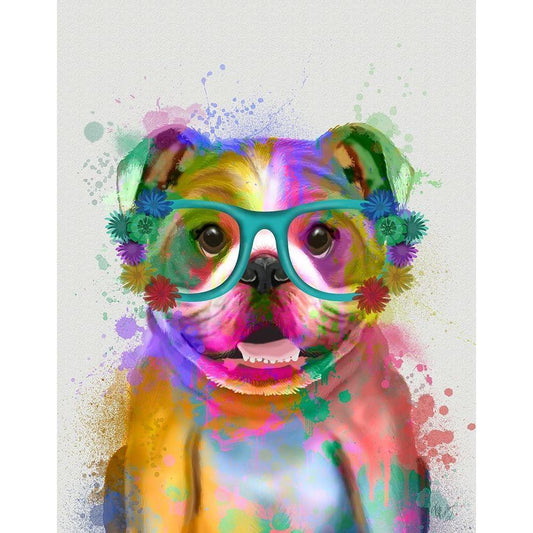 English Bulldog Rainbow Splash White Modern Wood Framed Art Print by Fab Funky