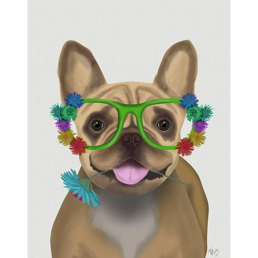 French Bulldog and Flower Glasses White Modern Wood Framed Art Print by Fab Funky