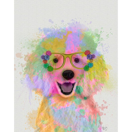 Poodle Rainbow Splash White Modern Wood Framed Art Print by Fab Funky