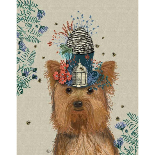 Yorkshire Terrier Milliners Dog White Modern Wood Framed Art Print by Fab Funky