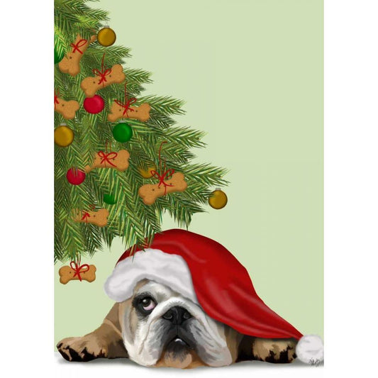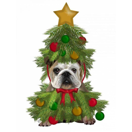 English Bulldog, Christmas Tree Costume White Modern Wood Framed Art Print by Fab Funky