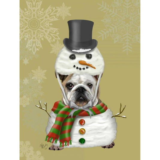 English Bulldog, Snowman Costume White Modern Wood Framed Art Print by Fab Funky