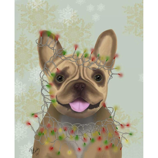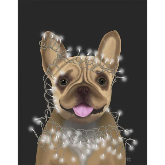 French Bulldog, Christmas Lights 1 White Modern Wood Framed Art Print by Fab Funky