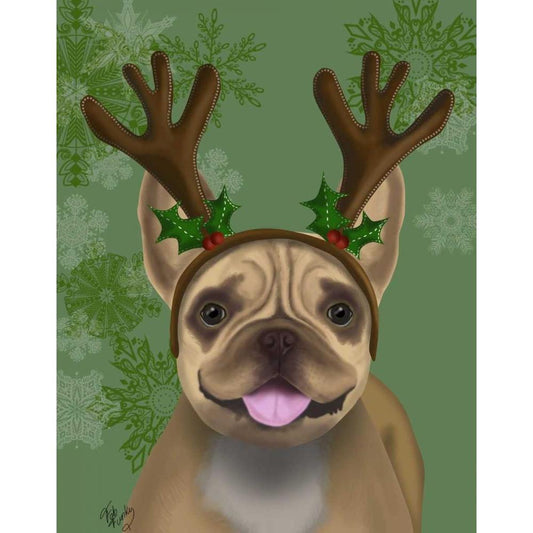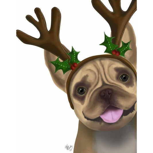French Bulldog, Antlers 2 White Modern Wood Framed Art Print by Fab Funky