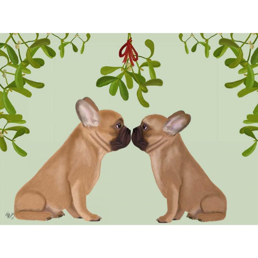 French Bulldogs and Mistletoe White Modern Wood Framed Art Print by Fab Funky