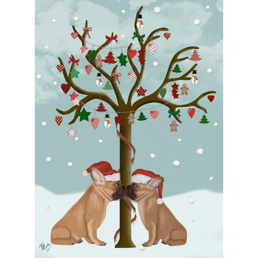 French Bulldogs and Christmas Tree White Modern Wood Framed Art Print by Fab Funky