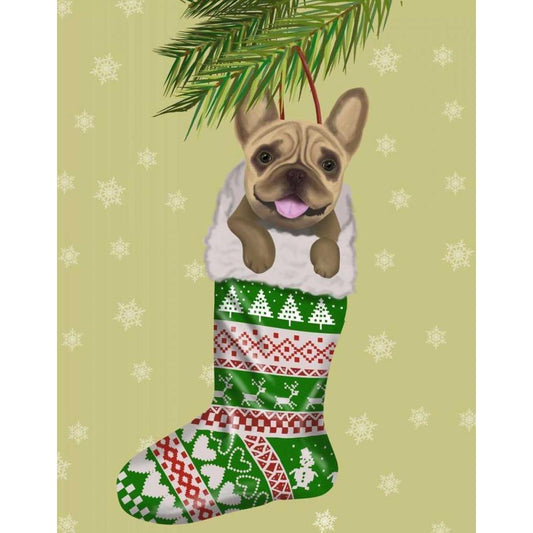 French Bulldog in Christmas Stocking White Modern Wood Framed Art Print by Fab Funky