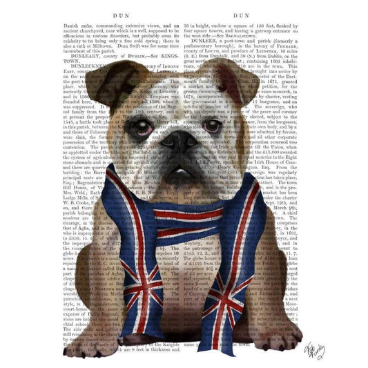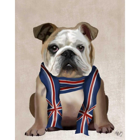 English Bulldog with Scarf White Modern Wood Framed Art Print by Fab Funky