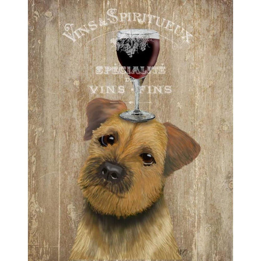 Dog Au Vin, Border Terrier White Modern Wood Framed Art Print by Fab Funky