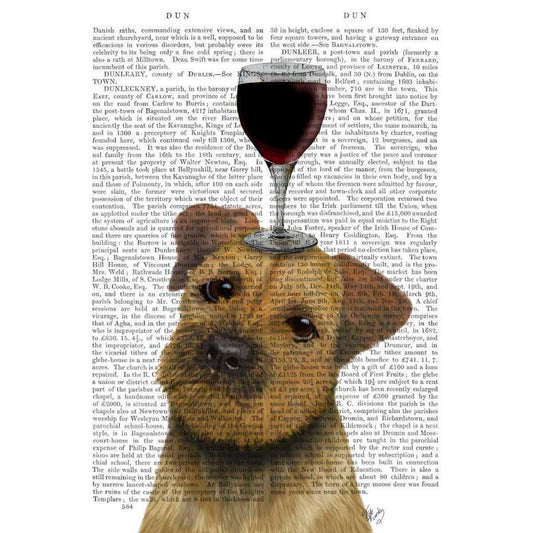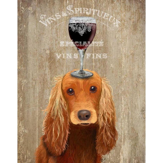 Dog Au Vin, Cocker Spaniel White Modern Wood Framed Art Print by Fab Funky