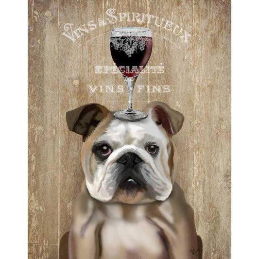 Dog Au Vin, English Bulldog White Modern Wood Framed Art Print by Fab Funky