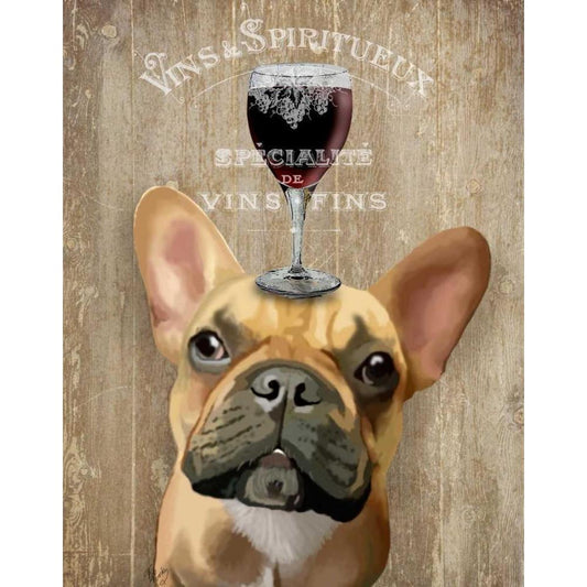 Dog Au Vin, French Bulldog White Modern Wood Framed Art Print by Fab Funky