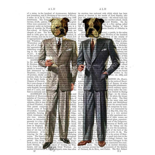 Bulldogs in Suits White Modern Wood Framed Art Print by Fab Funky