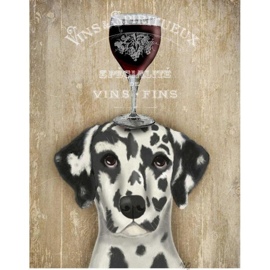 Dog Au Vin Dalmatian White Modern Wood Framed Art Print by Fab Funky