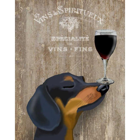 Dog Au Vin Dachshund White Modern Wood Framed Art Print by Fab Funky