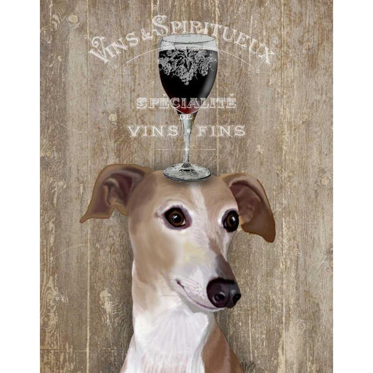 Dog Au Vin Greyhound White Modern Wood Framed Art Print by Fab Funky
