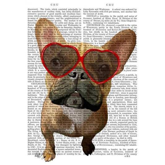 French Bulldog and Heart Glasses White Modern Wood Framed Art Print by Fab Funky