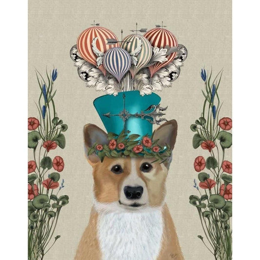 Corgi Milliners Dog White Modern Wood Framed Art Print by Fab Funky