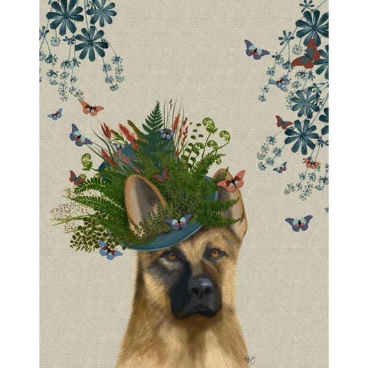 German Shepherd Milliners Dog White Modern Wood Framed Art Print by Fab Funky