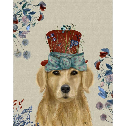 Golden Retriever Milliners Dog White Modern Wood Framed Art Print by Fab Funky