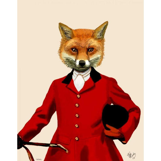 Fox Hunter 2 Portrait White Modern Wood Framed Art Print by Fab Funky