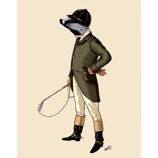 Badger The Rider Full White Modern Wood Framed Art Print by Fab Funky