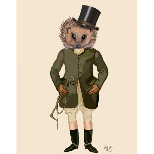 Hedgehog Rider Portrait White Modern Wood Framed Art Print by Fab Funky
