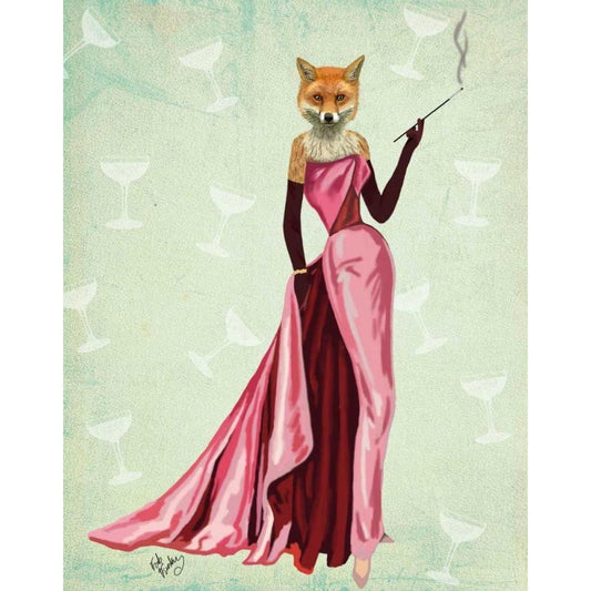 Glamour Fox in Pink White Modern Wood Framed Art Print by Fab Funky