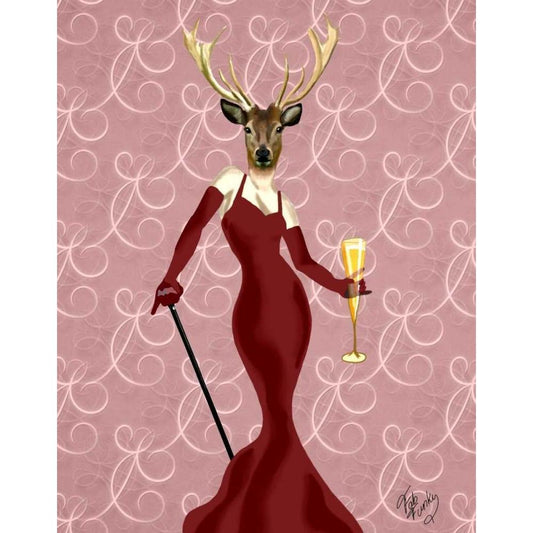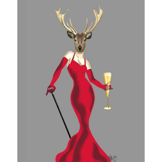 Glamour Deer in Red White Modern Wood Framed Art Print by Fab Funky