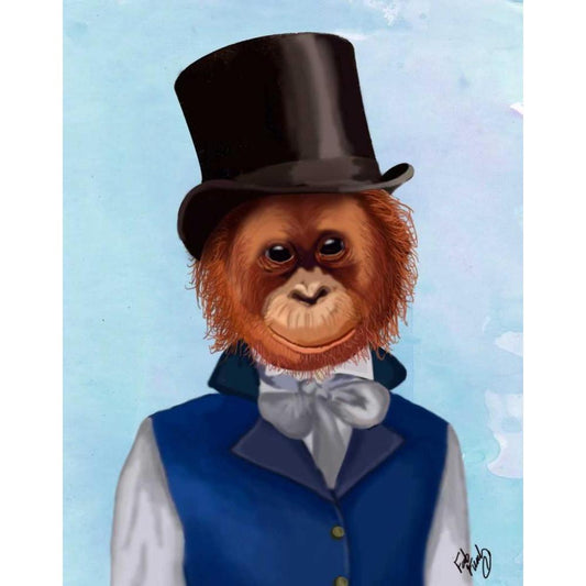 Orangutan in Top Hat White Modern Wood Framed Art Print by Fab Funky