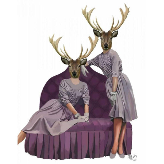 Deer Twins in Purple Dresses White Modern Wood Framed Art Print by Fab Funky
