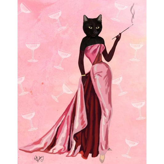 Glamour Cat in Pink White Modern Wood Framed Art Print by Fab Funky