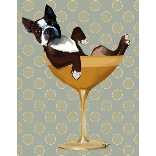 Boston Terrier in Cocktail Glass White Modern Wood Framed Art Print by Fab Funky