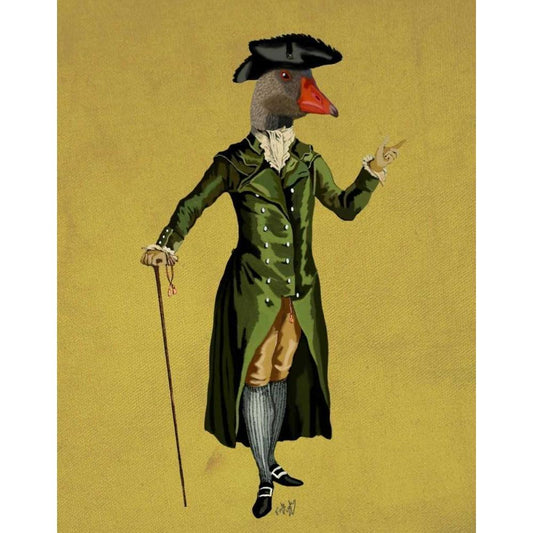Goose in Green Regency Coat White Modern Wood Framed Art Print by Fab Funky