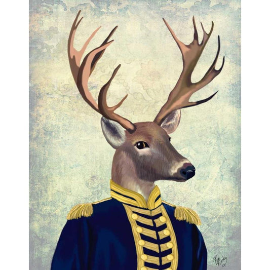 Captain Deer White Modern Wood Framed Art Print by Fab Funky