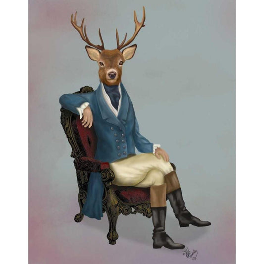 Distinguished Deer Full White Modern Wood Framed Art Print by Fab Funky