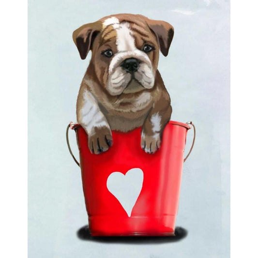 Bulldog Bucket Of Love Red White Modern Wood Framed Art Print by Fab Funky